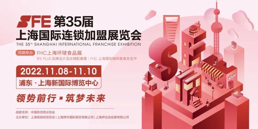 SFE第35届上海国际连锁加盟展涉及餐饮、零售、服务、教育和连锁资源五大板块,以线上线下强融合的形式,严选600+主流细分赛道头部标杆品牌和实力新锐 品牌,集店型展示、产品和服务体验、商务洽谈及活动交流为一体,助力优质连锁品牌和专业投资人之间的精准高效配对。